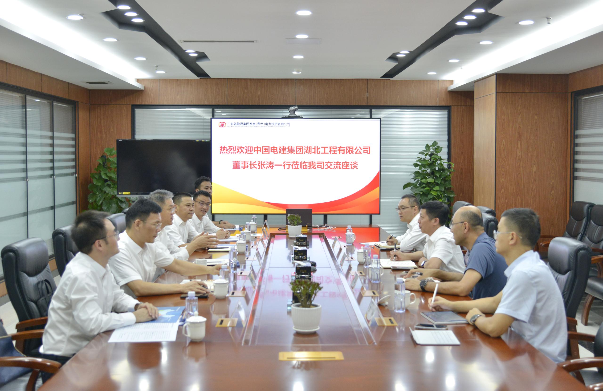 10月14日至15日,中國電建集團湖北工程有限公司(以下簡稱湖北工程公司)黨委書記、董事長張濤帶隊赴貴州省貴陽市開展系列商務活動,先后與貴州烏江水電開發有限責任公司(中國華電集團有限公司貴州分公司)(以下簡稱烏江水電(華電貴州公司))黨委書記、董事長柯勁平,中國電建集團貴陽勘測設計研究院有限公司(以下簡稱貴陽院)黨委書記、董事長武建學,廣東省能源集團西南(貴州)電力投資有限公司(以下簡稱粵電西南公司)黨委副書記、總經理(主持工作)肖克平舉行會談,就進一步加強合作進行了深入交流。